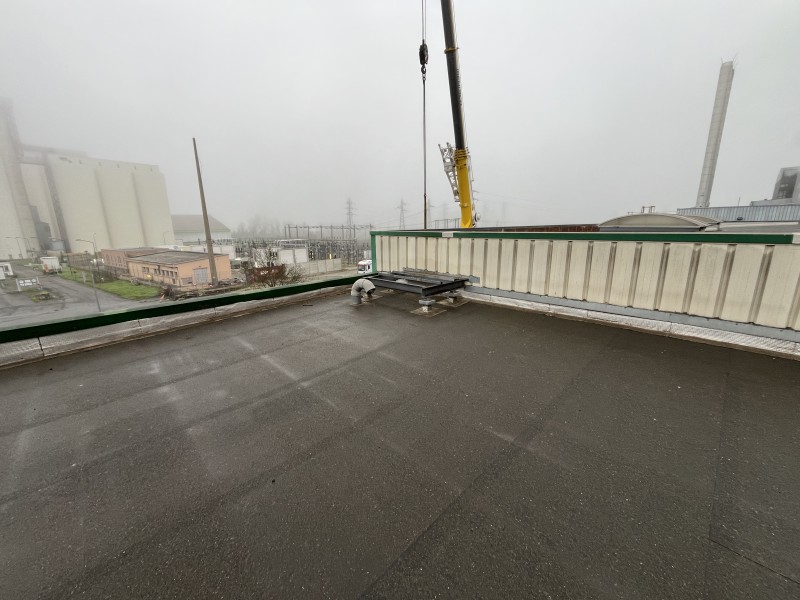 Les travaux ont été effectués en une matinée pour Eiffage Énergies Systèmes, dans le respect des délais et des exigences de sécurité du site industriel. Cette intervention a permis de libérer la toiture des équipements obsolètes tout en assurant un traitement écologique des anciens systèmes de climatisation.
